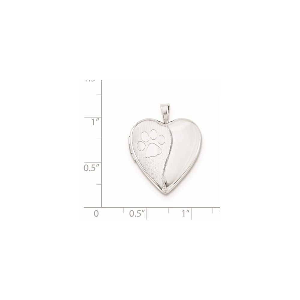 Sterling Silver Rhodium-plated Satin & Polished Paw Prints Heart Locket