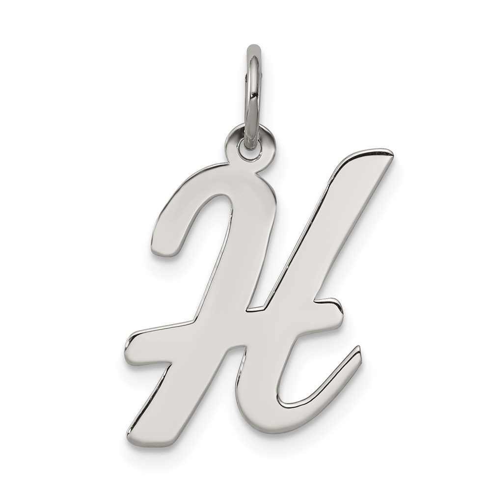 Sterling Silver Rhodium-plated Script Letter H Initial Charm