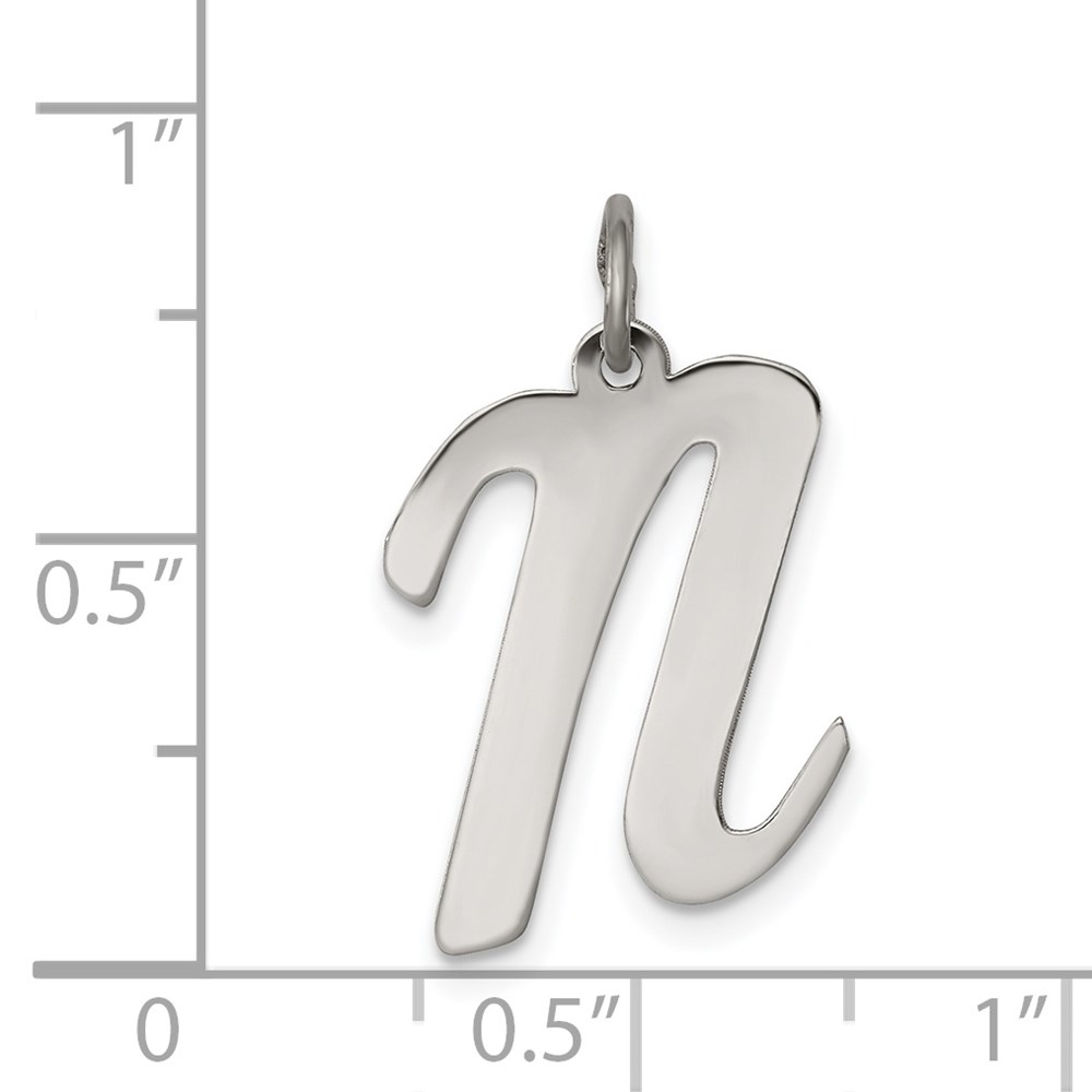 Sterling Silver Rhodium-plated Script Letter N Initial Charm