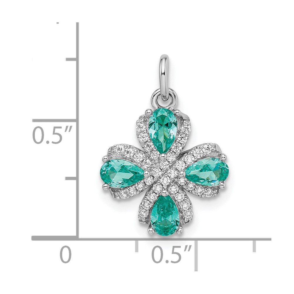 Sterling Silver Rhodium plated Teal & White CZ Pendant