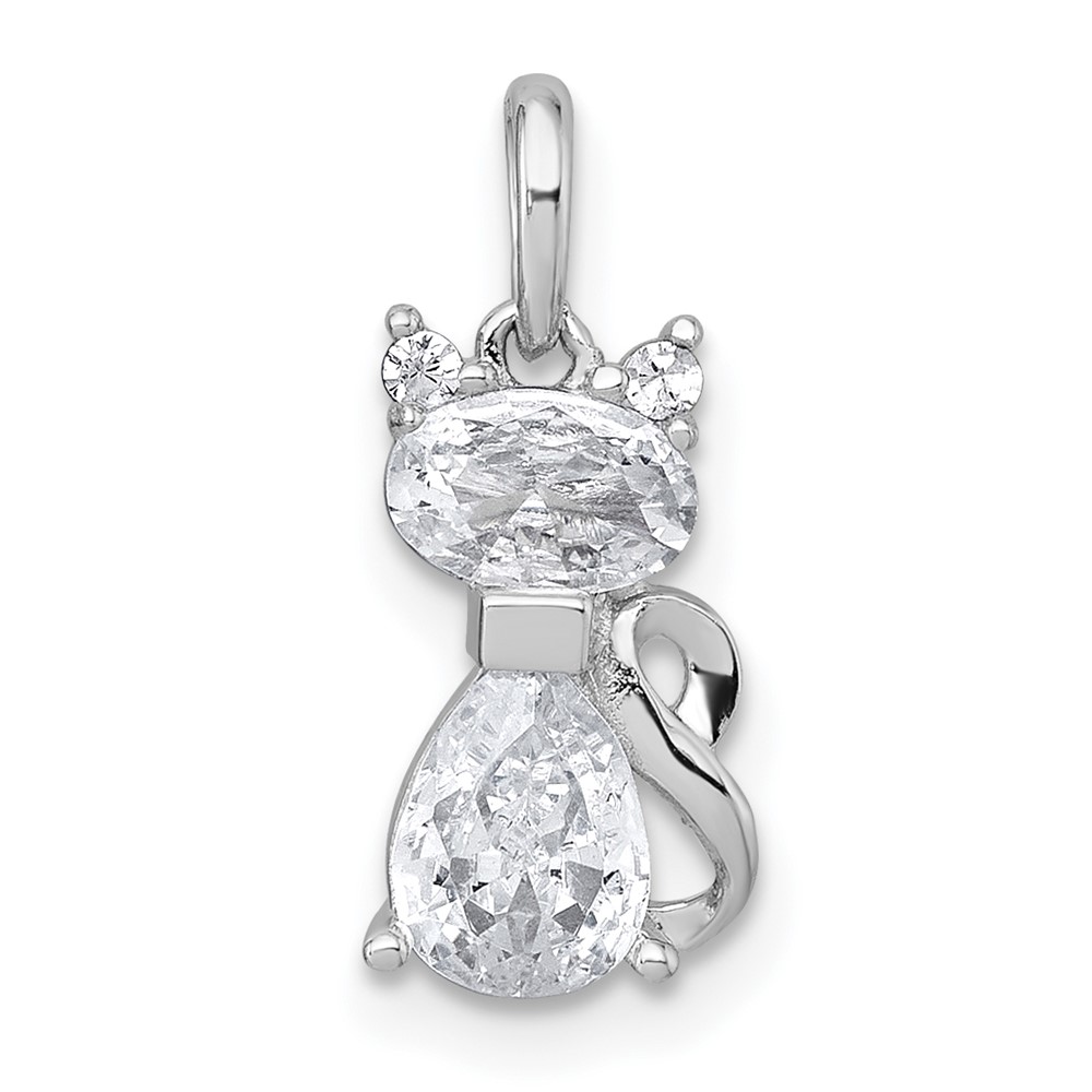 Sterling Silver Rhodium-plated White CZ Cat Pendant