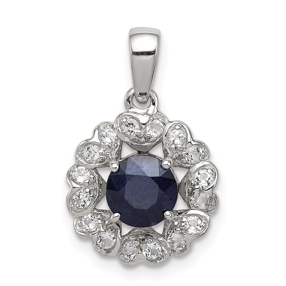 Sterling Silver Rhodium Plated White Topaz & Sapphire Pendant