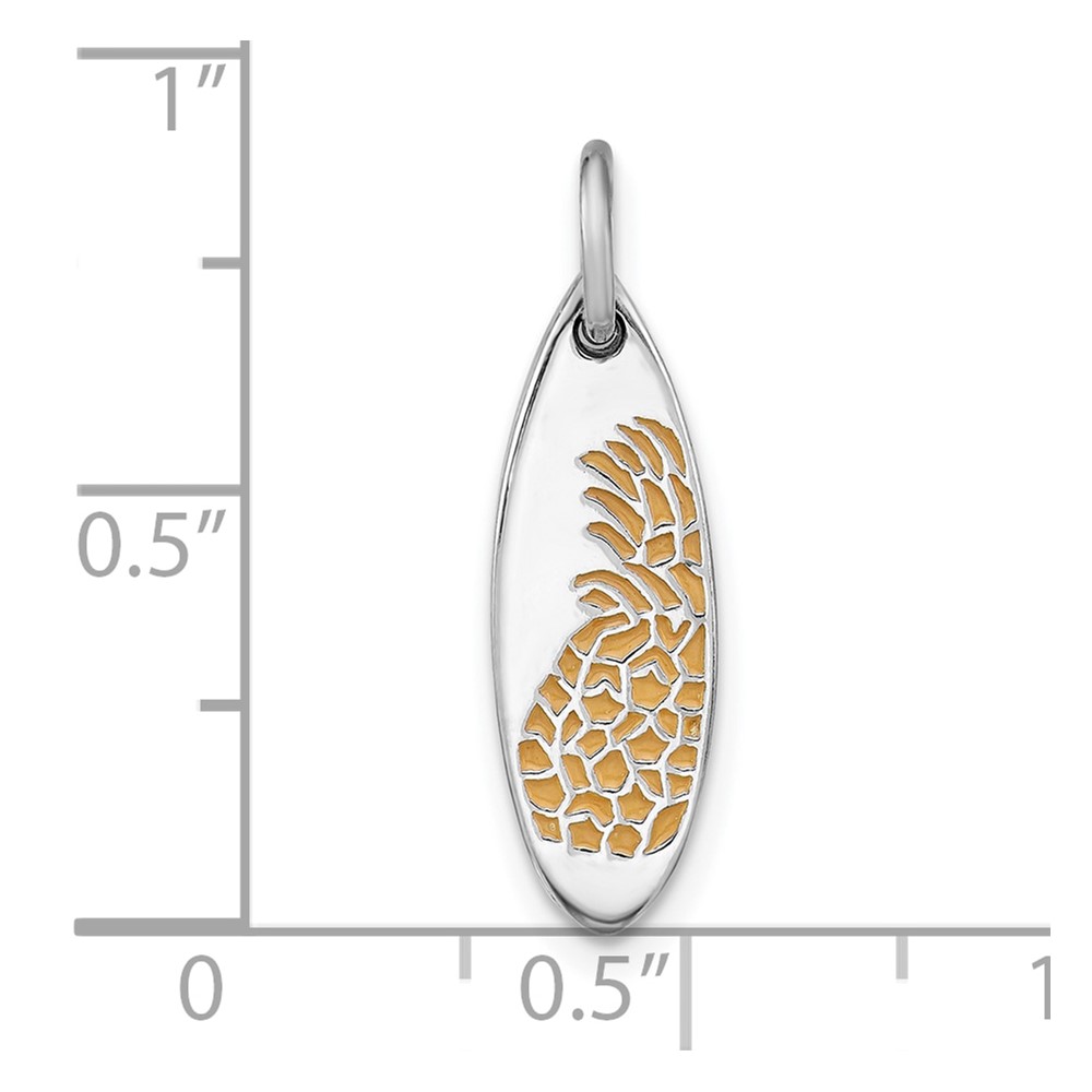 Sterling Silver Rhodium-plated Yellow Enamel Pineapple Surfboard Pendant