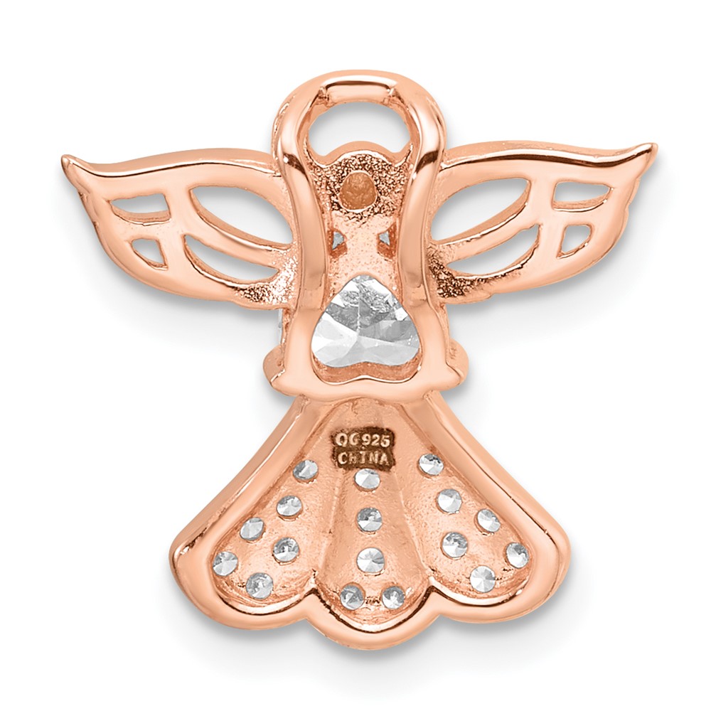 Sterling Silver Rose Gold-plated CZ Angel Chain Slide Pendant