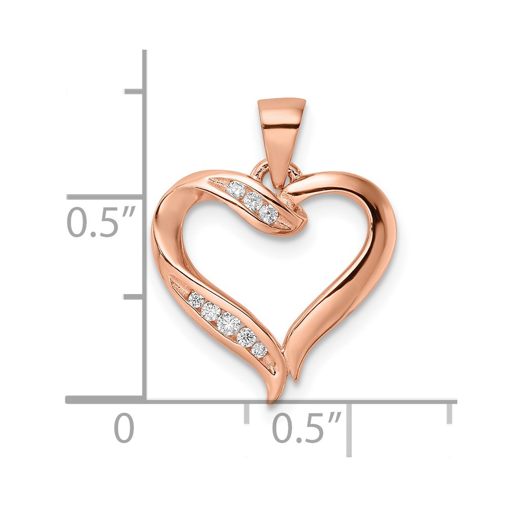 Sterling Silver Rose-tone CZ Open Heart Pendant