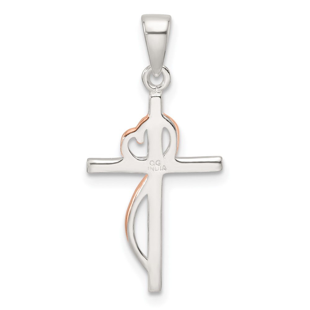 Sterling Silver Rose-tone Polished CZ Heart Cross Pendant