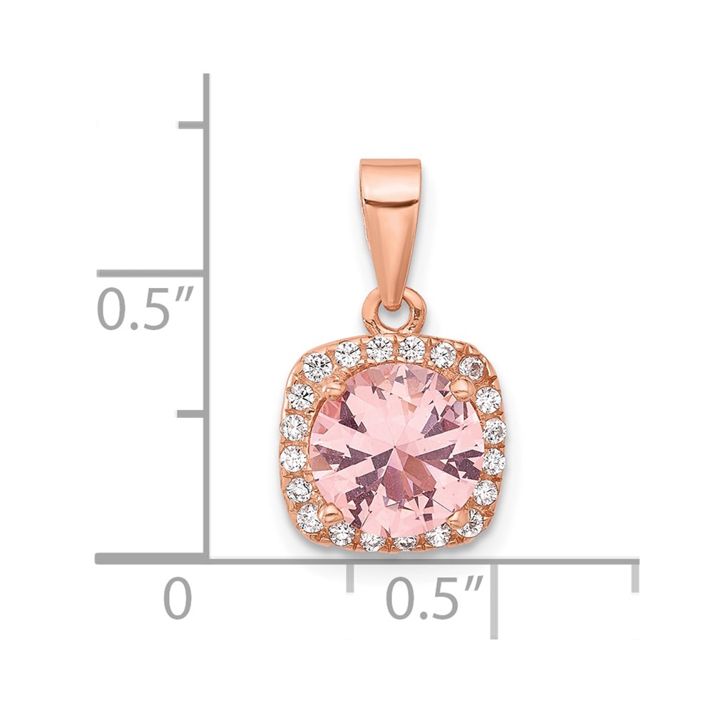 Sterling Silver Rose-tone Square Crystal Pendant
