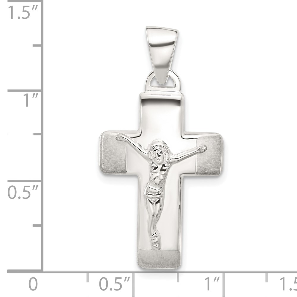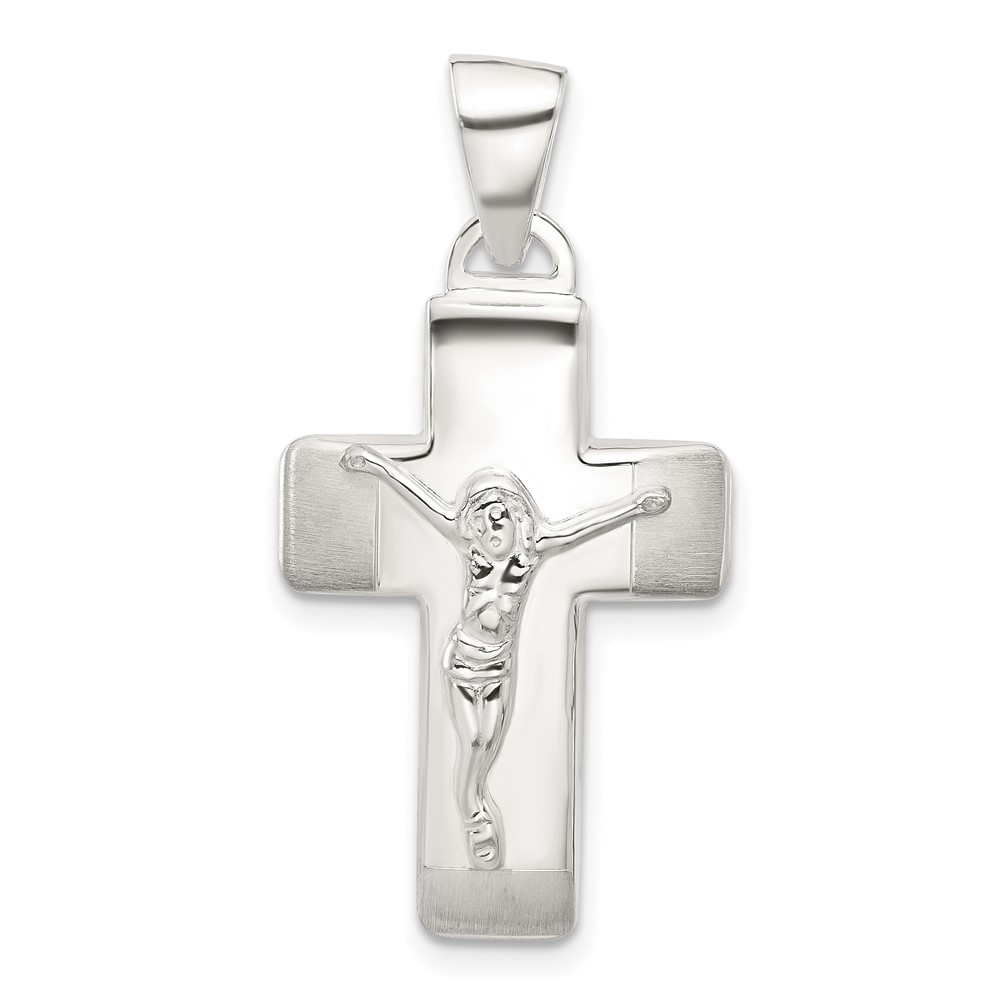 Sterling Silver Satin and Polished Crucifix Cross Pendant