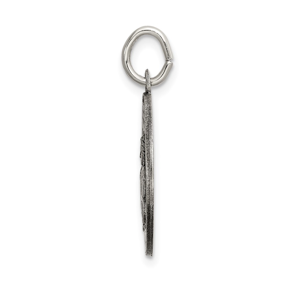 Sterling Silver Satin Antiqued Spanish St. Gabriel Medal Pendant