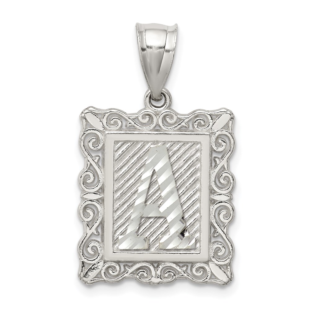 Sterling Silver Square Diamond-cut Letter A Initial Pendant