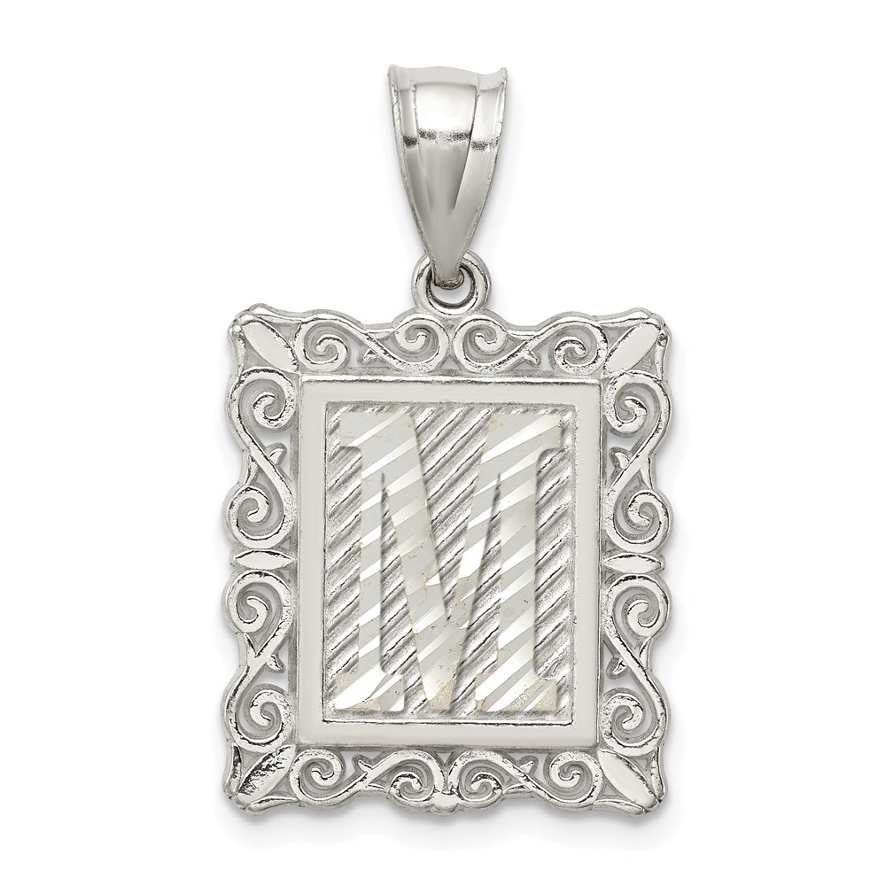 Sterling Silver Square Diamond-cut Letter M Initial Pendant