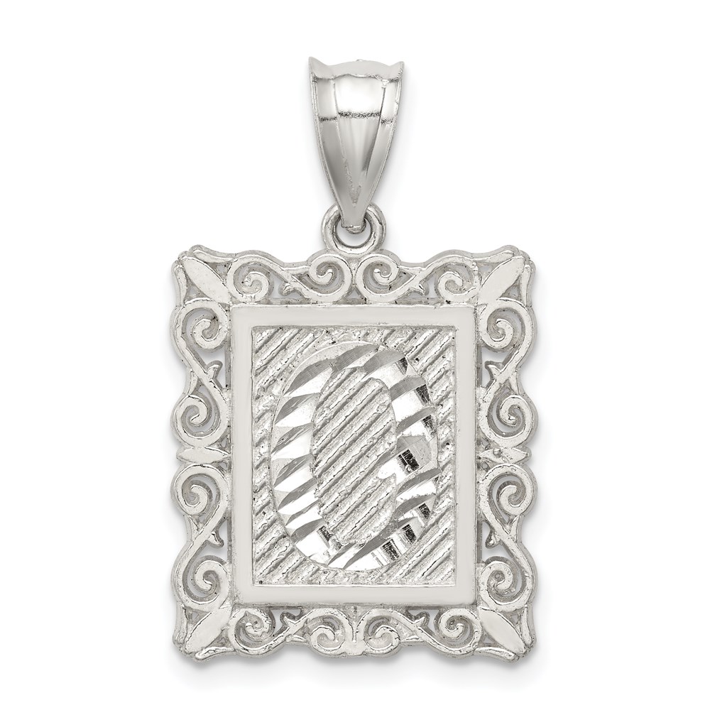 Sterling Silver Square Diamond-cut Letter O Initial Pendant