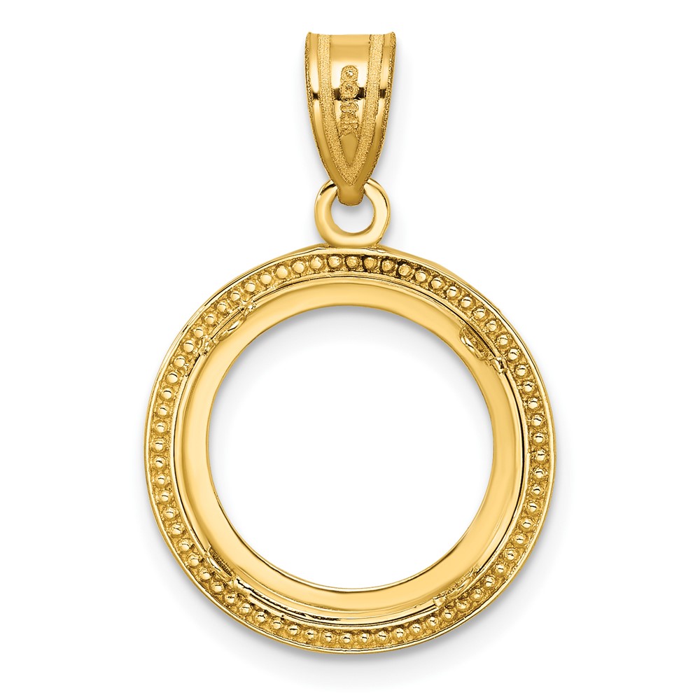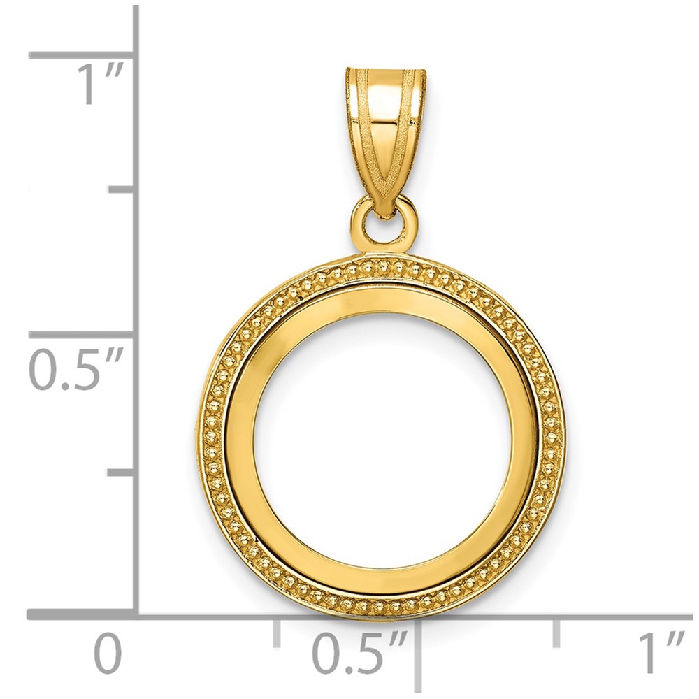 Wideband Distinguished Coin Jewelry 14k Polished and Beaded 14.0mm Prong Coin Bezel Pendant