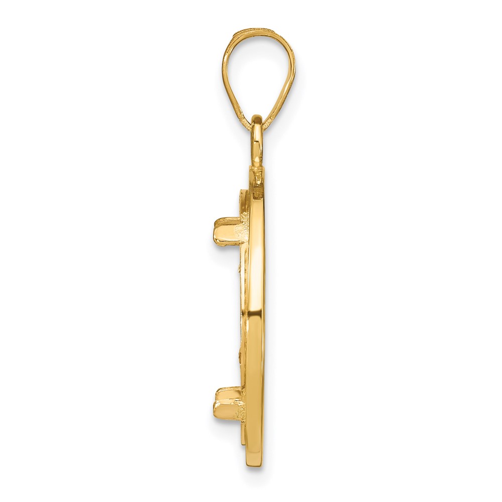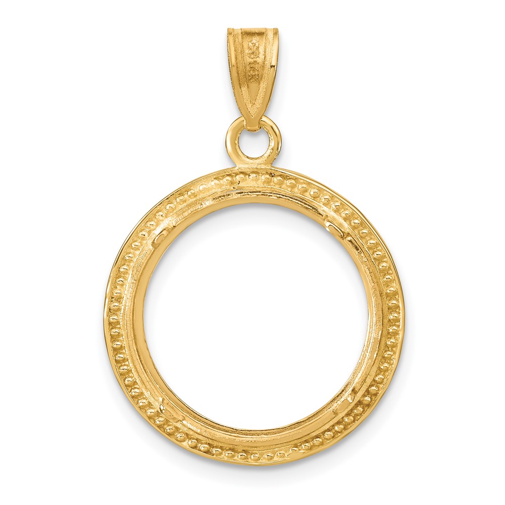 Wideband Distinguished Coin Jewelry 14k Polished and Beaded 16.5mm Prong Coin Bezel Pendant
