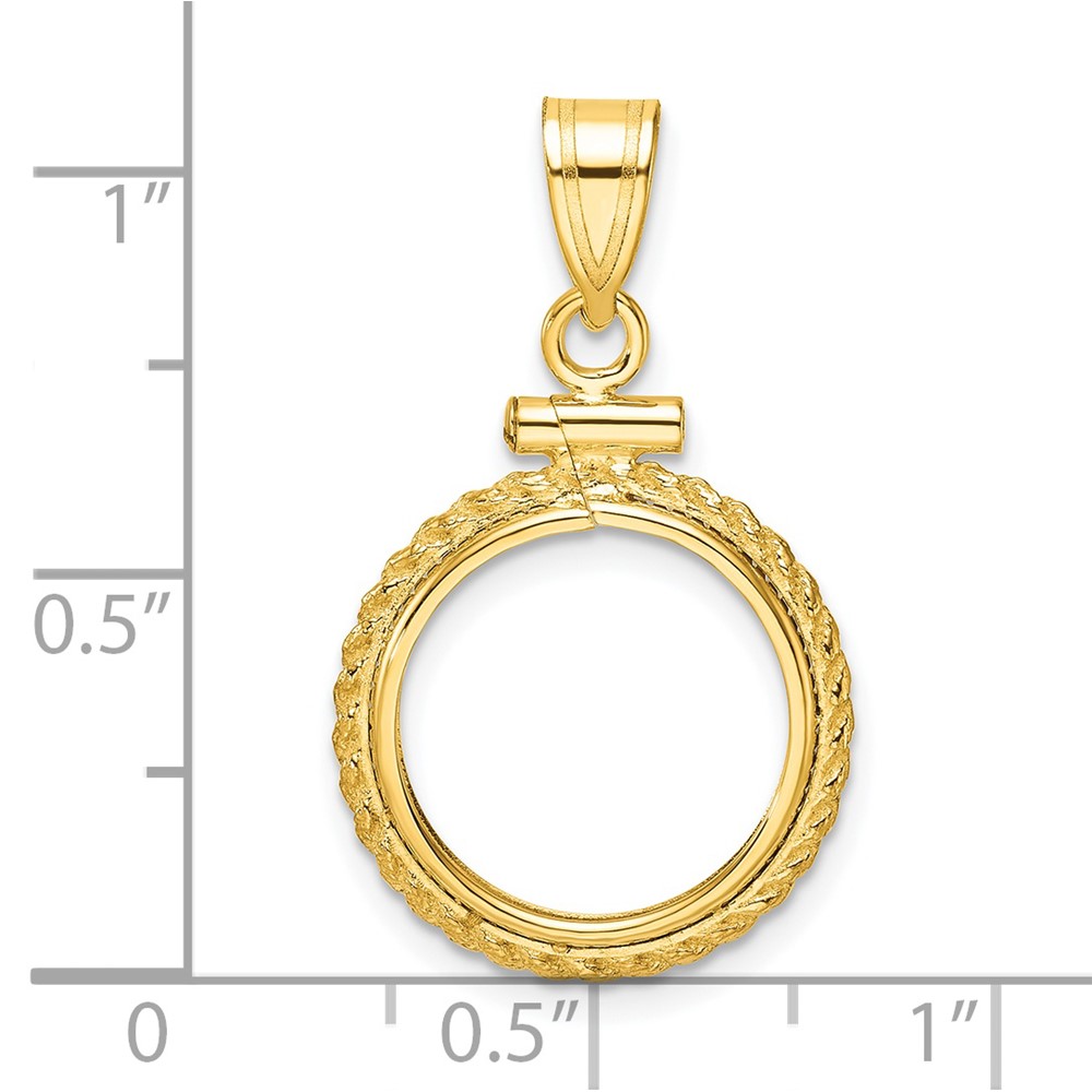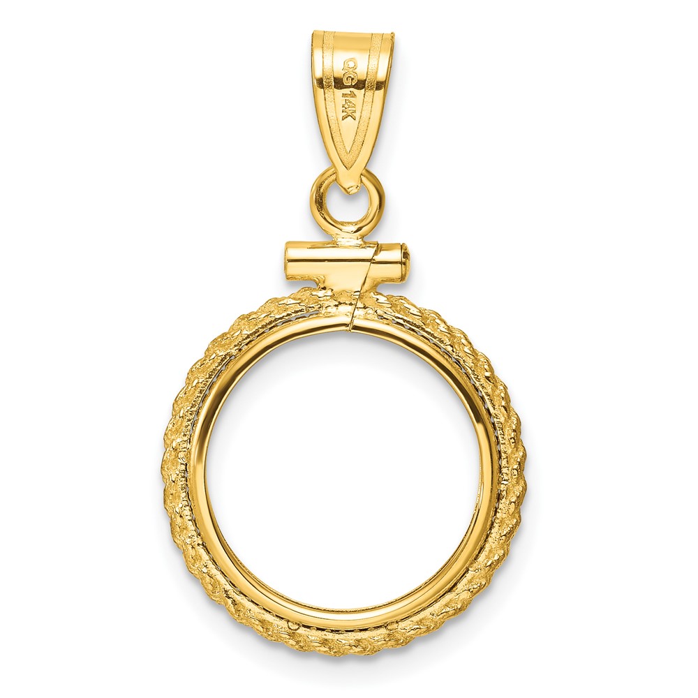 Wideband Distinguished Coin Jewelry 14k Polished Casted Rope 14.0mm x 1.1mm Screw Top Coin Bezel Pendant