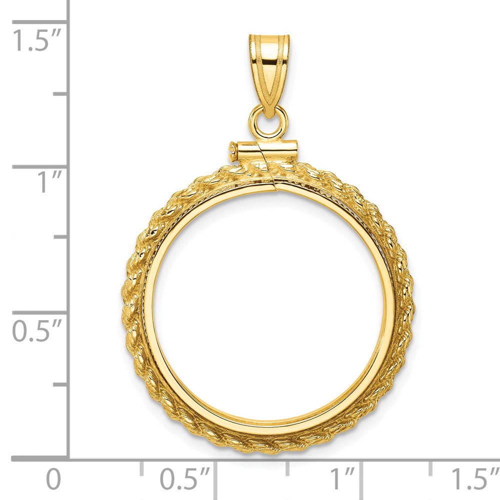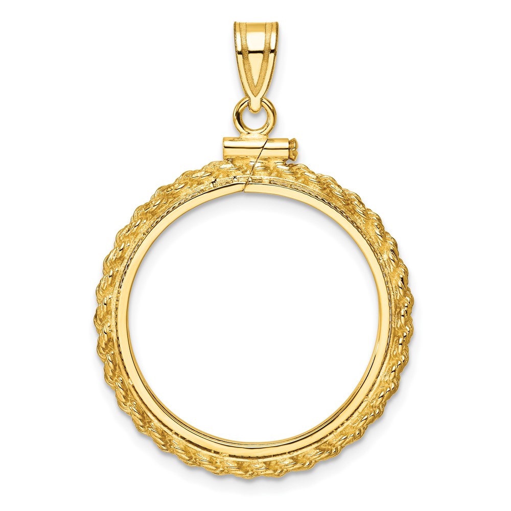 Wideband Distinguished Coin Jewelry 14k Polished Casted Rope 22.0mm x 1.9mm Screw Top Coin Bezel Pendant