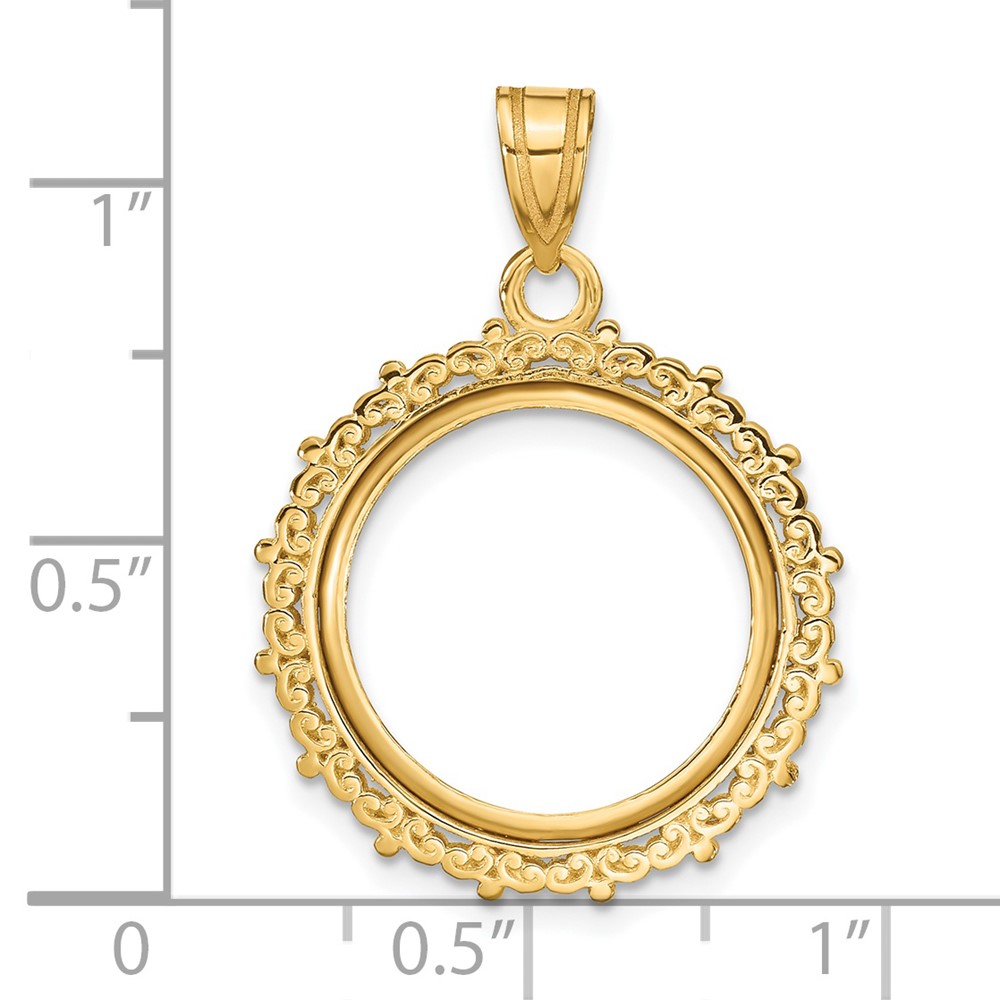 Wideband Distinguished Coin Jewelry 14k Polished Fancy 16.5mm Prong Coin Bezel Pendant