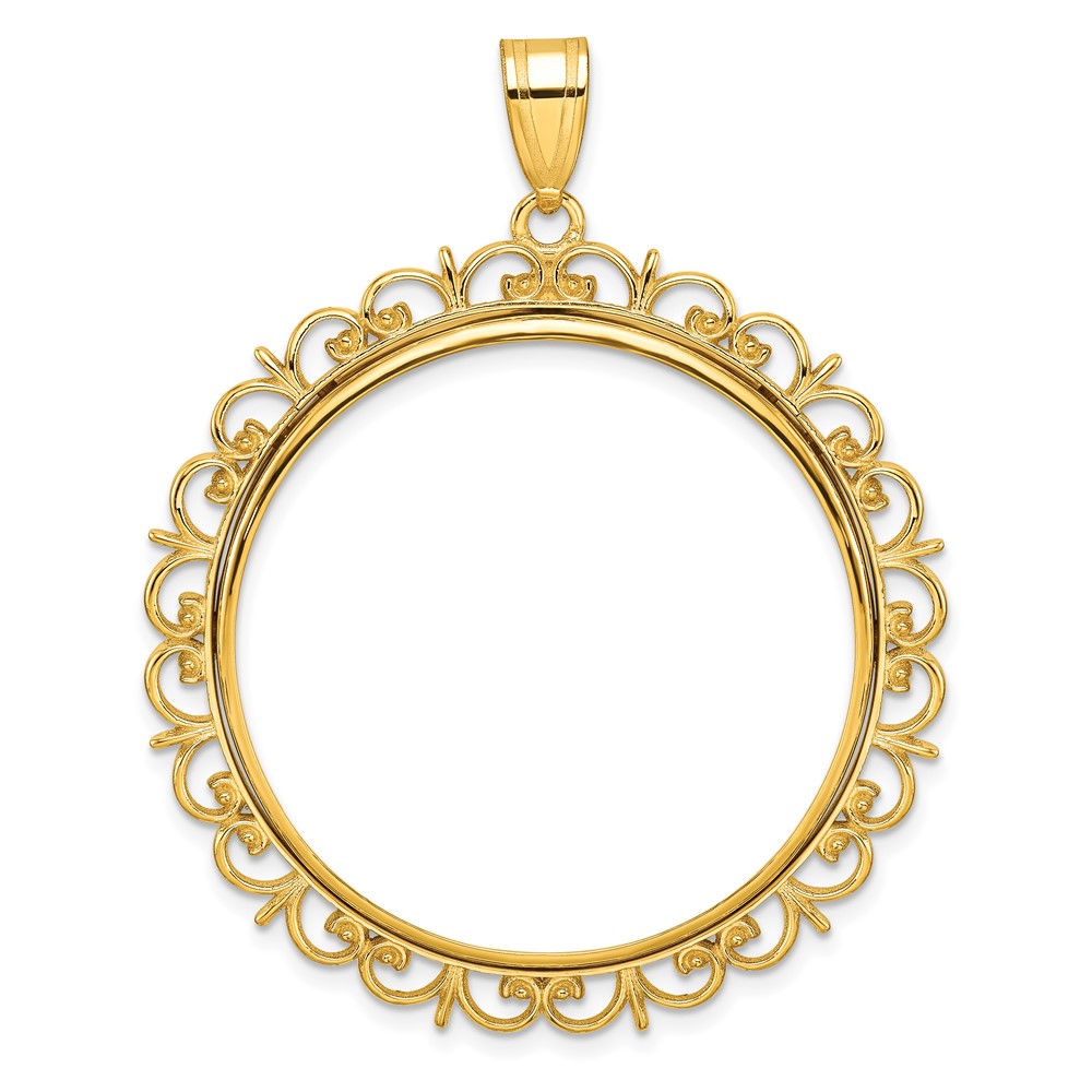 Wideband Distinguished Coin Jewelry 14k Polished Fancy 32.7mm Prong Coin Bezel Pendant