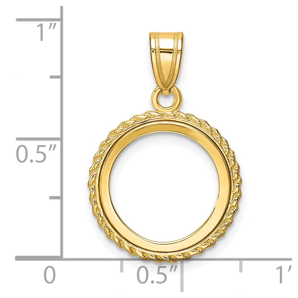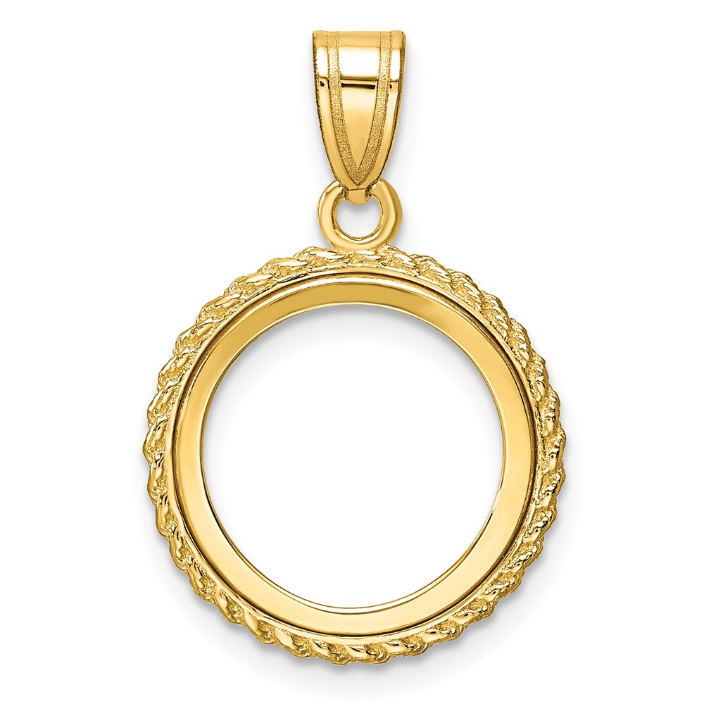 Wideband Distinguished Coin Jewelry 14k Polished with Casted Rope 14.0mm Prong Coin Bezel Pendant